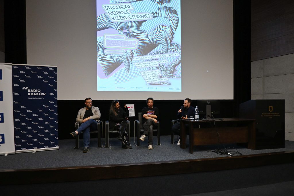 W Galerii Pryzmat w Krakowie (ul. Łobzowska 3, Dom Plastyków) odbyło się Biennale Rzeźby Cyfrowej 2025, które zgromadziło artystów z całej Polski, prezentujących najnowsze osiągnięcia w dziedzinie sztuki cyfrowej i nowych mediów. Wystawa była czynna od 3 października 2025 roku, a kulminacją wydarzenia był wernisaż 10 października o godz. 18:00 oraz panel dyskusyjny i wręczenie nagród, które odbyły się tego samego dnia o godz. 15:30 w Auli ASP w Krakowie. Zapraszamy do obejrzenia fotorelacji z Biennale, która oddaje atmosferę tego inspirującego spotkania artystów, twórców i miłośników sztuki współczesnej.
