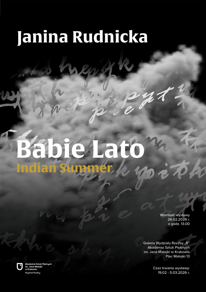 Dokumentacja z wernisażu wystawy „Babie Lato (Indian Summer)” Janiny Rudnickiej, który odbył się w Galerii Wydziału Rzeźby „R” Akademii Sztuk Pięknych im. Jana Matejki w Krakowie dnia 26.02.2026 r.
